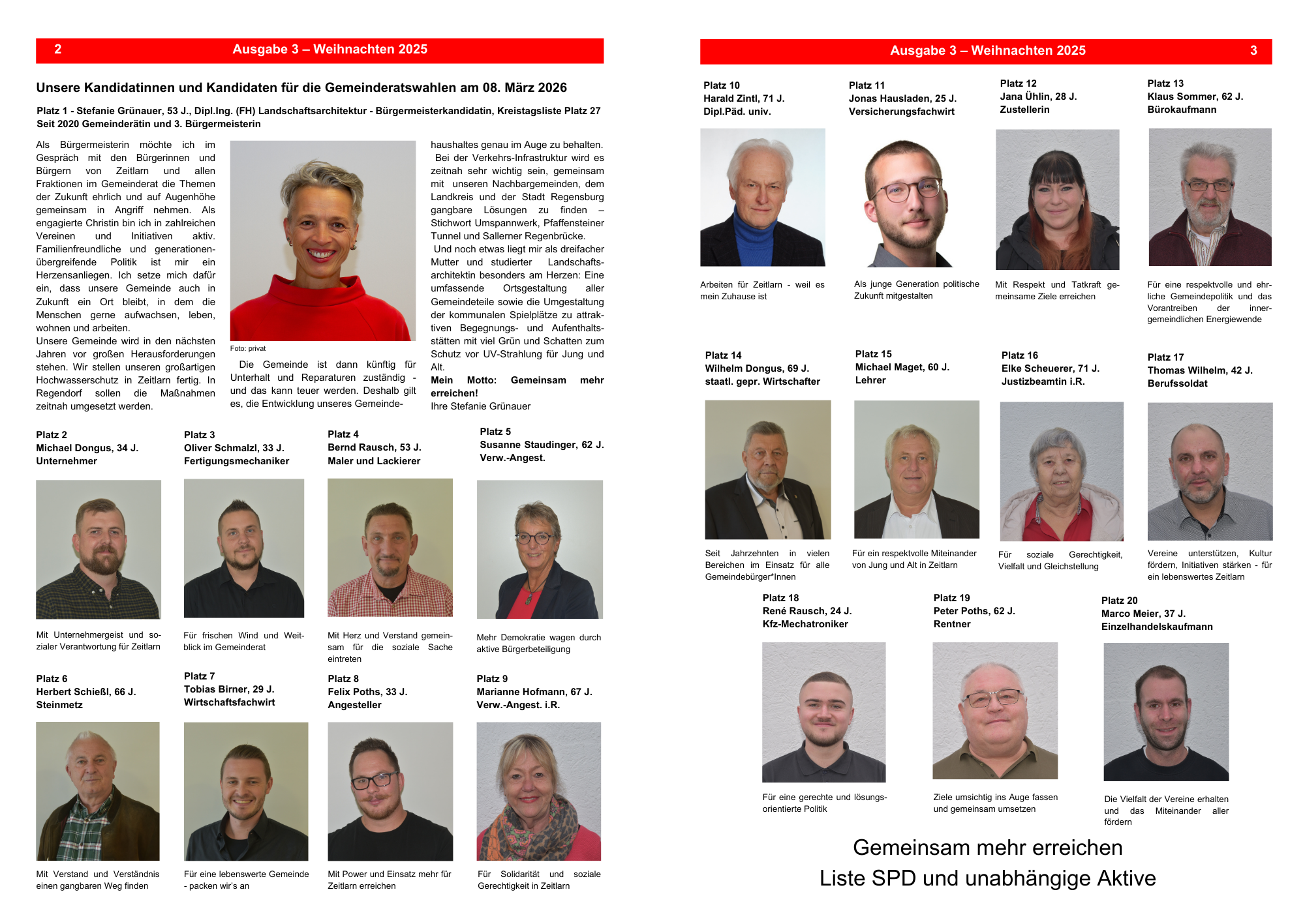 Am Sonntag, 30. November nominierte der SPD OV Zeitlarn die Kandidatinnen und Kandidaten für die Kommunalwahlen am 08 März 2026. Die Liste mit einer Kurzinformation zu den Kandidierenden finden Sie hier Liste SPD und unabhängige Aktive